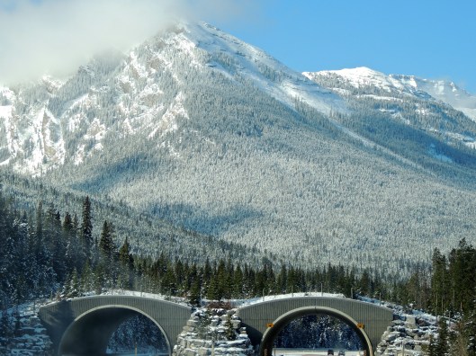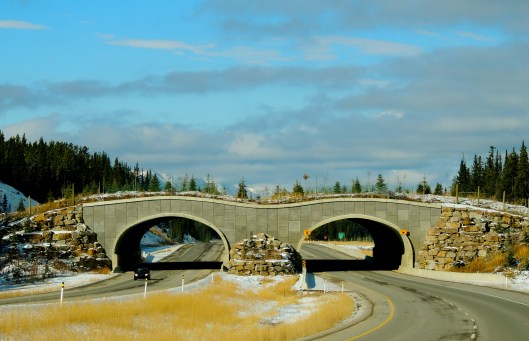 There is an abundance of wildlife in Banff National Park and there is also a major highway (The TransCanada) running through the park connecting Banff and Lake Louise. In order to to give the bears, wolves, elk, moose and all the other wildlife an opportunity to move safely throughout the park there are many underpasses and a few overpasses especially for them.