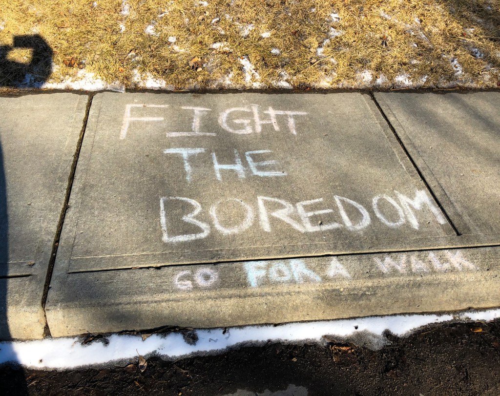 We are not in a full “lockdown” here, so going for a walk is still allowed. It’s essential for our physical and mental well-being so I hope it continues to be allowed. Be safe, practice all the protocols, don’t go to the places that everyone flocks to, and choose a time when you don’t see as many people out. When you cross the street to avoid someone, smile or say hi. Yes, it takes a bit more planning, but if you can go out for a walk, I highly encourage it.