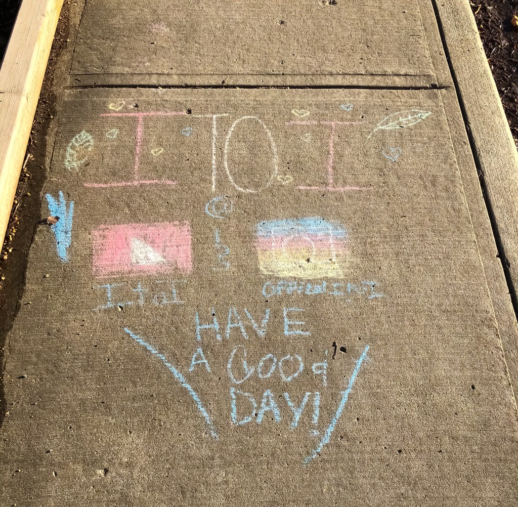 On an otherwise very blah day, this made my day….I don’t know Auntie Chan or Leo, but I love that she can look out her living room window and see this message!